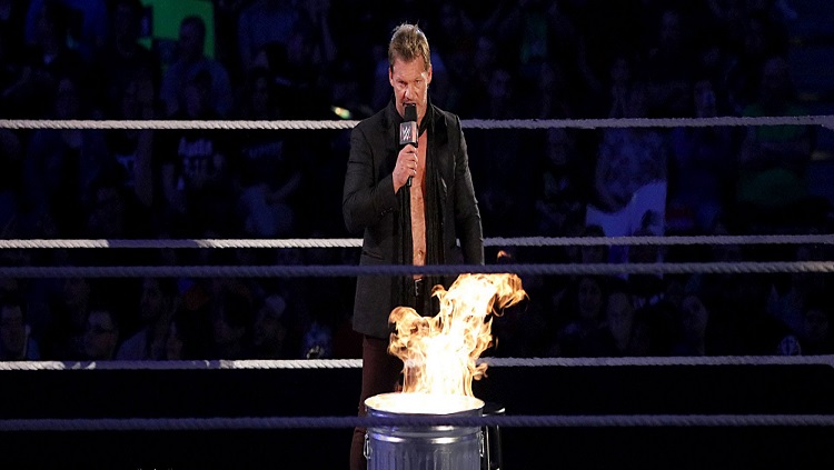 Chris Jericho Jericho stated he was upset that the audience chose to cheer for AJ instead of him. He predicted Styles would not last in the WWE. Chris felt that the audience treated him like trash. Just as he explained that AJ’s career would go up in flames, he lit a Y2AJ shirt on fire and threw it in the trash. Jericho menacingly stared into the camera as the smoke from the burning shirt rose into the air.